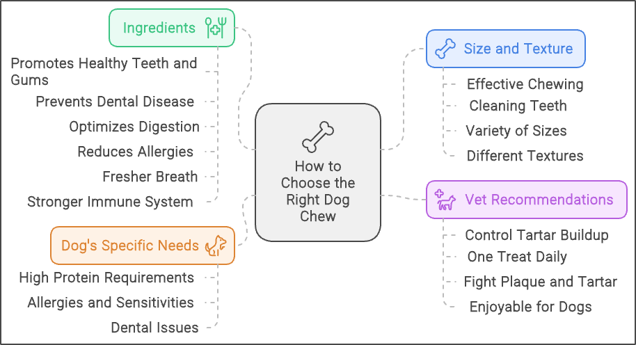 Choosing the right dental chew for your dog can be challenging with numerous options available. Consider key factors like ingredients, size, texture, vet recommendations, and your dog’s requirements.