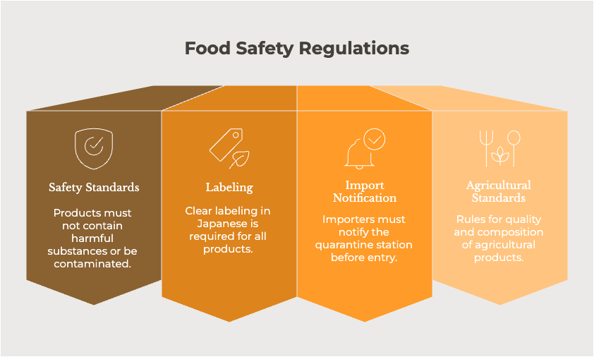 - Labeling: Clear labeling in Japanese is required, including product name, ingredients, allergens, net content, and country of origin.